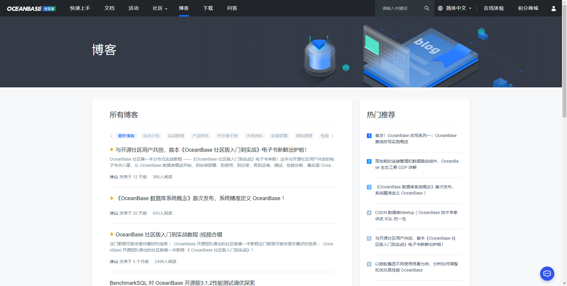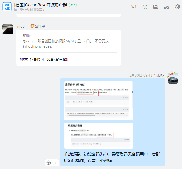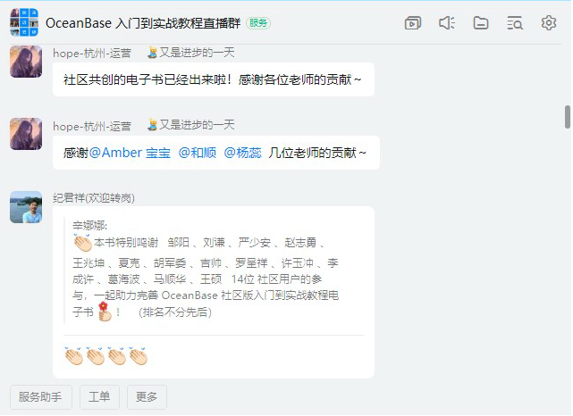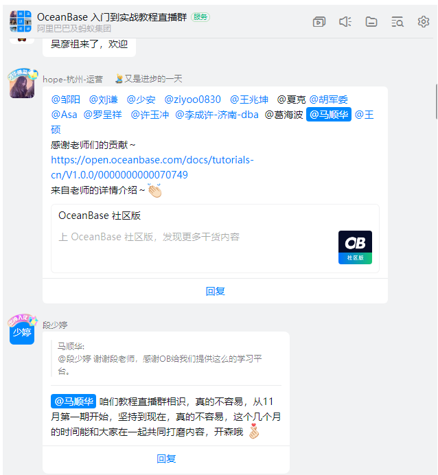 OB开源了,有专属社区博客https://www.oceanbase.com/,还有钉钉群微信群,OB开源团队非常乐于跟用户交流OB技术。