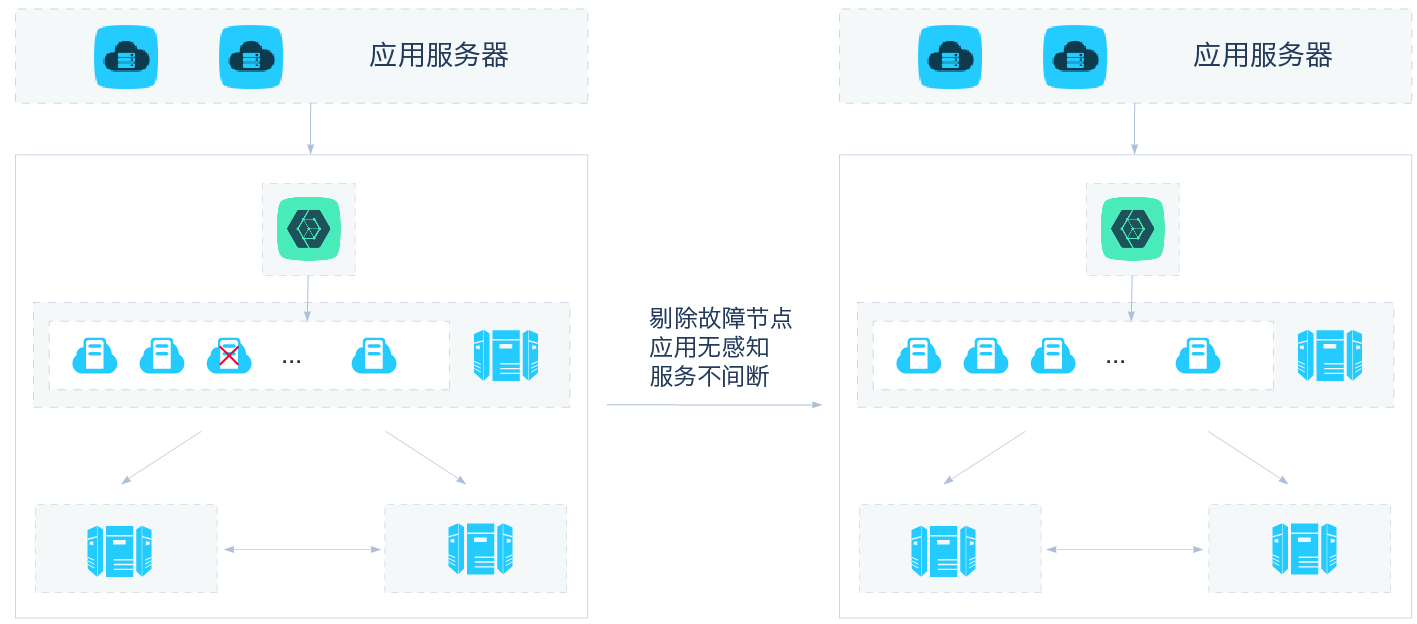 - 利用 OceanBase出色的容灾特性,具备任意时间,任意服务器,出现不可抗拒因素灾难时,即使某台服务器异常,也不会影响用户访问。而且完全无需人工接入的无损自适应容灾,RPO=0,RTO<30 秒。