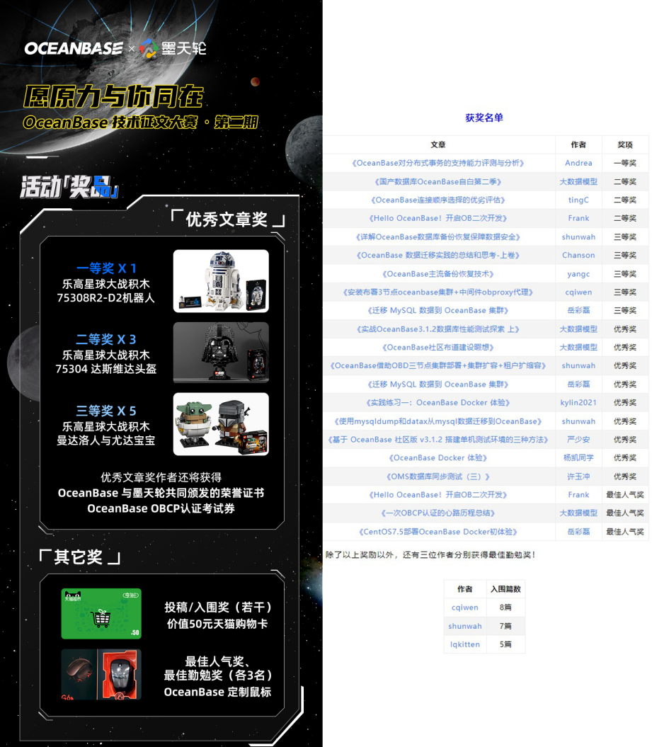 https://www.modb.pro/db/379904 收官!OceanBase 第二届技术征文大赛获奖名单公布!
