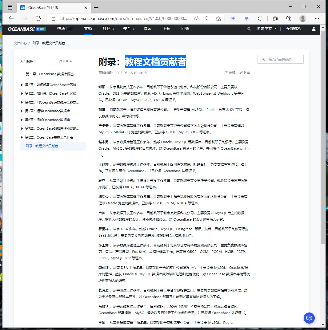 官方社区版教程文档宣传海报和官网文档中心都有署名(马顺华)贡献者之一