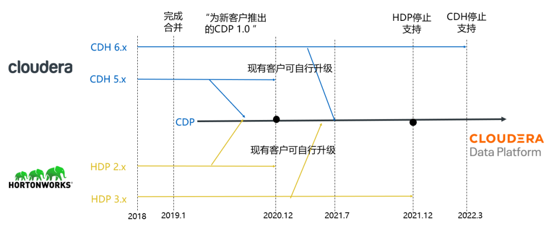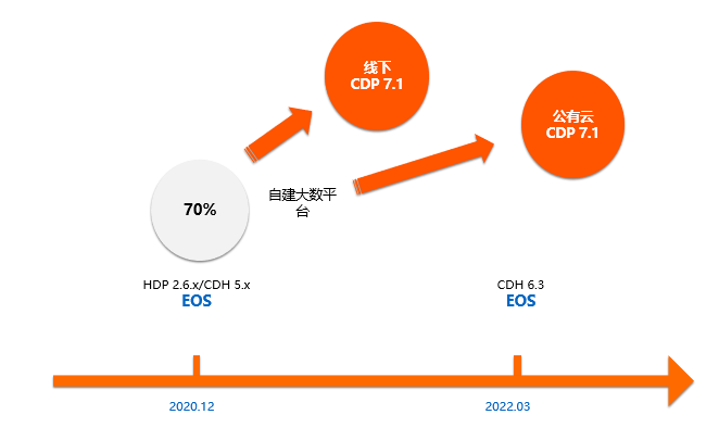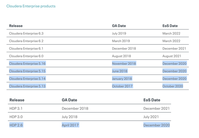 HDP 2.6.x/CDH 5.x覆盖了约70%的客户群,EOS 时间2020年12月终止服务