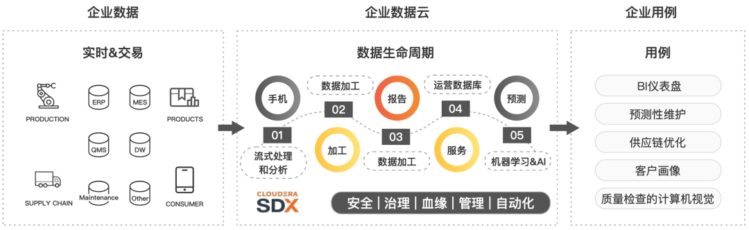 Cloudera 企业数据云是社区版 CDH 的全新商业化升级产品,是阿里云和 Cloudera 联合打造阿里云上的半托管形态的大数据平台。该平台可以灵活地运行各种企业工作负载(包括实时摄取和分析、批处理、交互式SQL、企业搜索、高级分析和机器学习等),支持从边缘计算到人工智能的多功能数据分析,提供企业级的安全模型来保障客户数据安全。