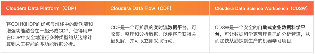 Cloudera Data Platform(CDP),Cloudera Data Flow(CDF),Cloudera Data Science Workbench(CDSW)