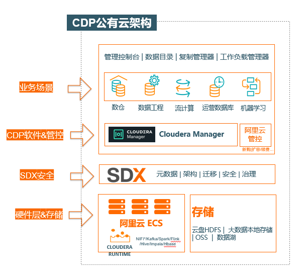阿里云+Cloudera 产品介绍 公有云方案:云上 CDP 专有云方案:CDP、CDF、CDSW 典型场景