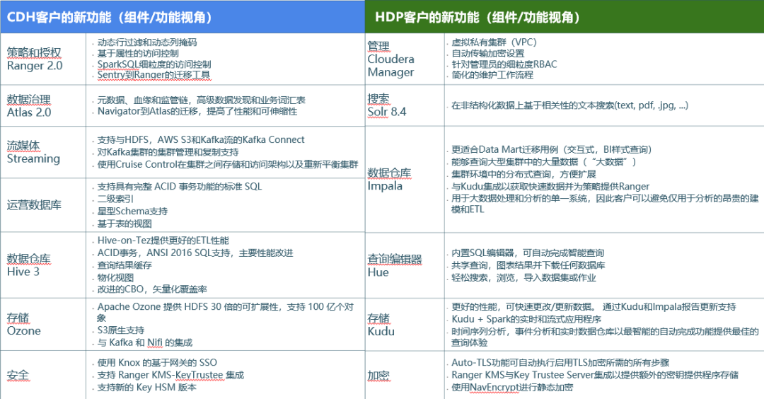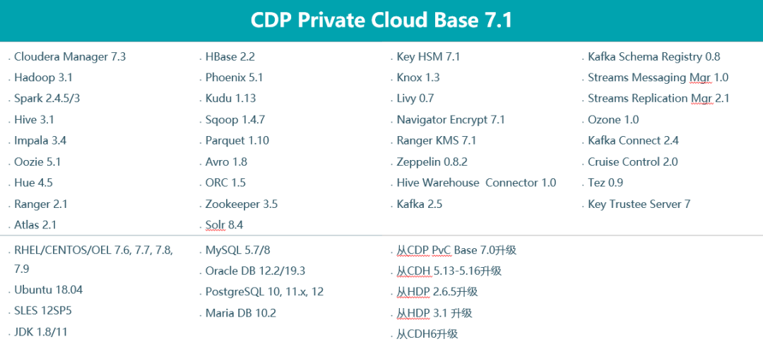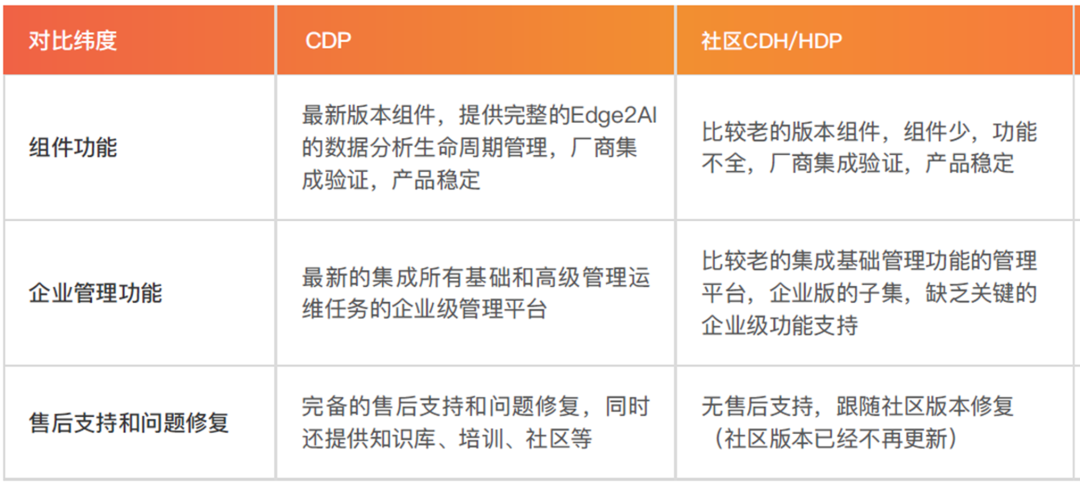 CDP 的 HDFS,Hive,HBase,Spark,Kafka 和 Solr 等组件版本较新
