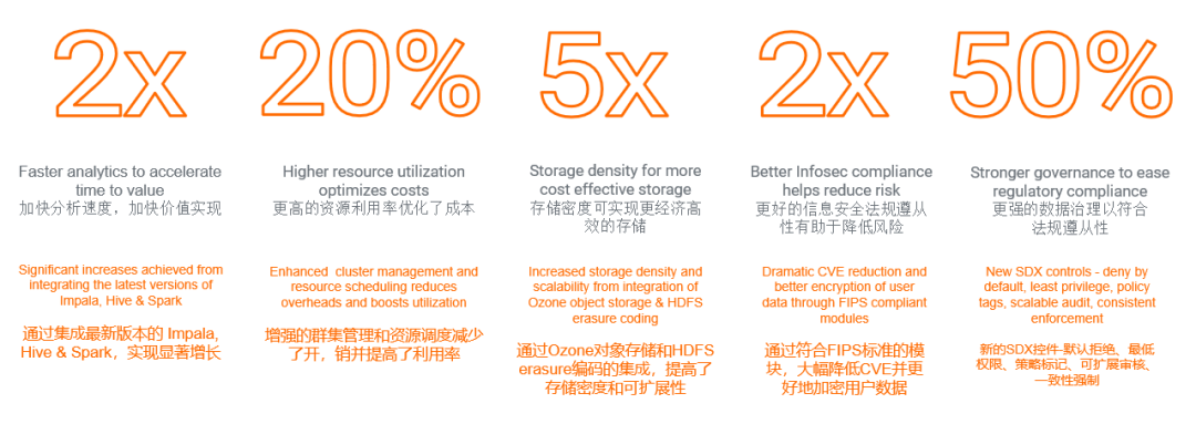数据仓库:Impala 性能提升2到7倍;新执行引擎 Hive on Tez,支持 ACID、物化视图,性能提升5倍以上