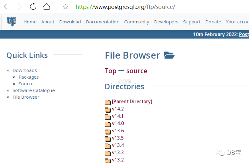 点击上图中的 file browser,我们还能下载 PostgreSQL 最新的源码。