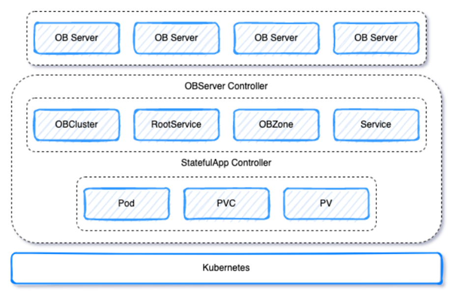 OB Operator 项目设计整体分三块:StatefulApp Controller、OBServer Controller 和 Operator Orchestrator(规划中)。