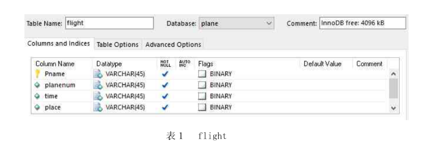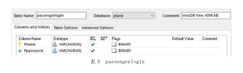 为了支持此管理系统,创建数据库plane,在这个数据库里包含四个表:flight表,passenger表,passengerlogin表和mangerlogin表。