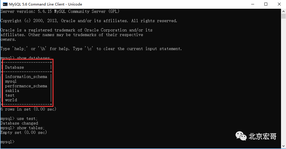 1 show databases;
