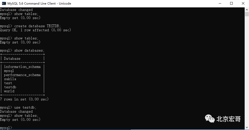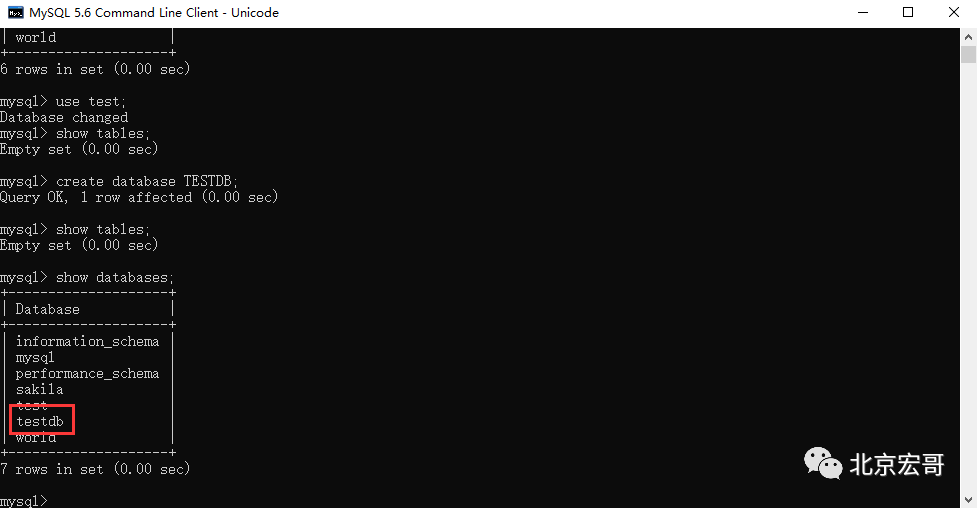 1 create database TESTDB;