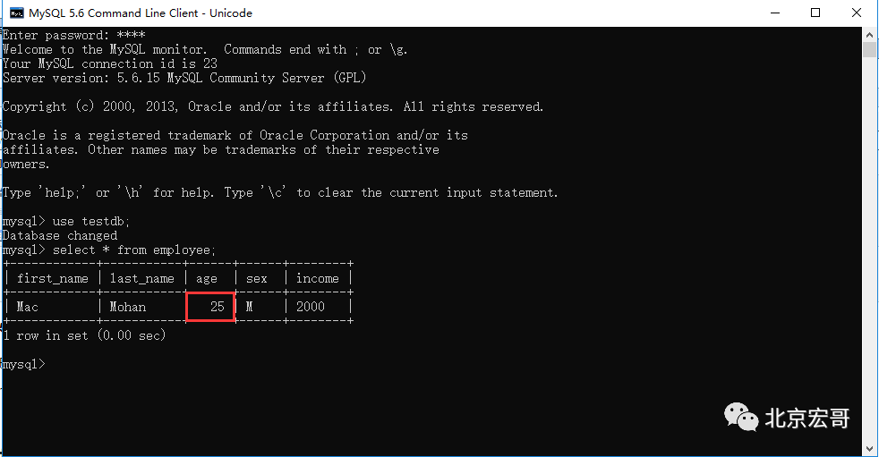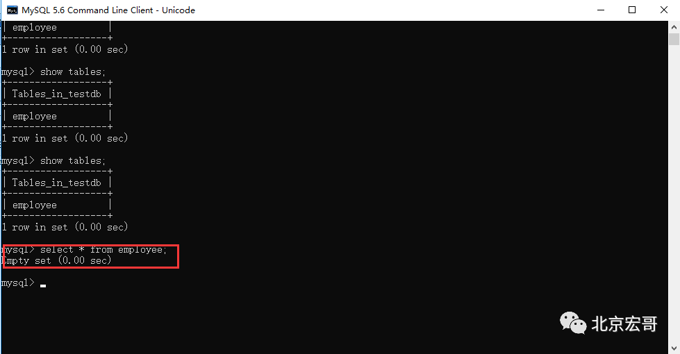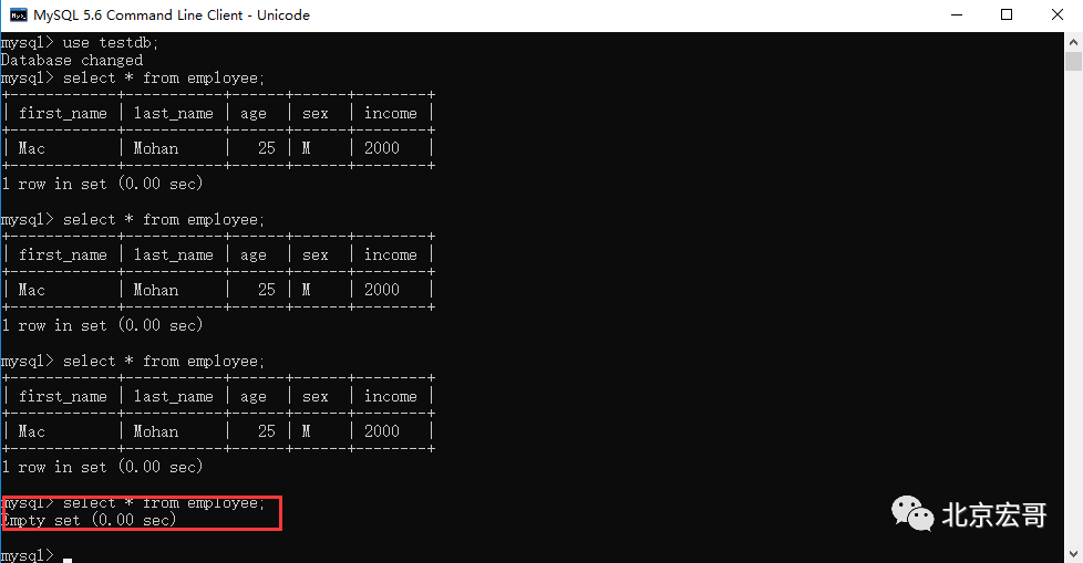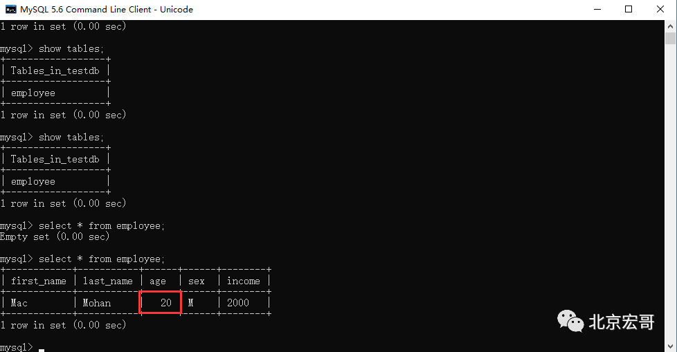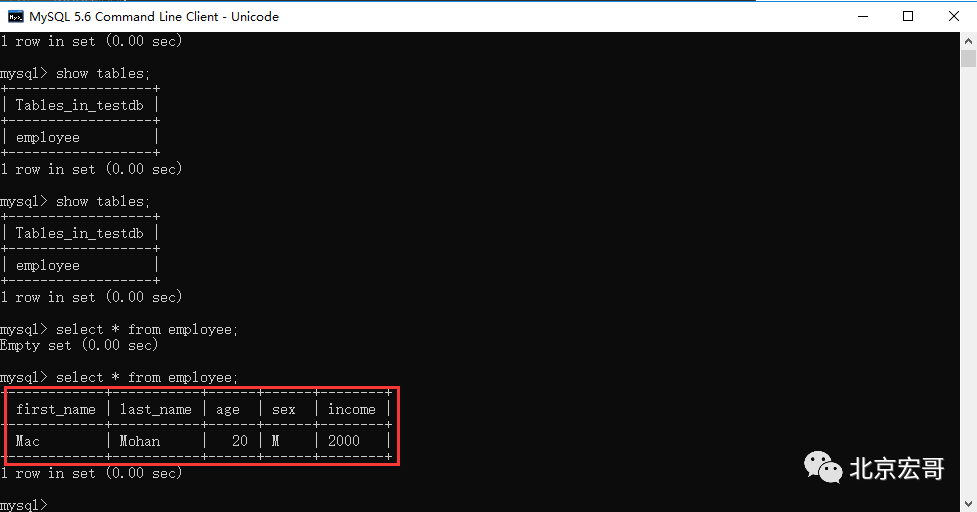 在TESTDB数据库中您已经创建了表 EMPLOYEE(测试用的测试表)