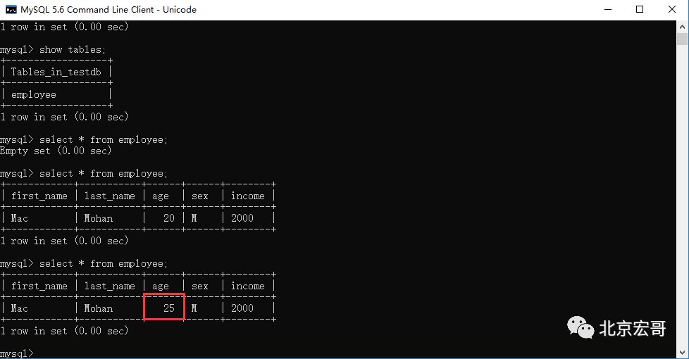 4、查询age变更到25了没有
