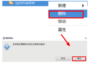 l 在“已注册的服务器”上,右击某个服务器,再单击“删除”。