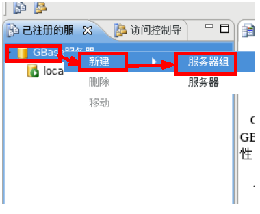 · 右击 GBase 服务器,指向“新建”,然后单击“服务器”。