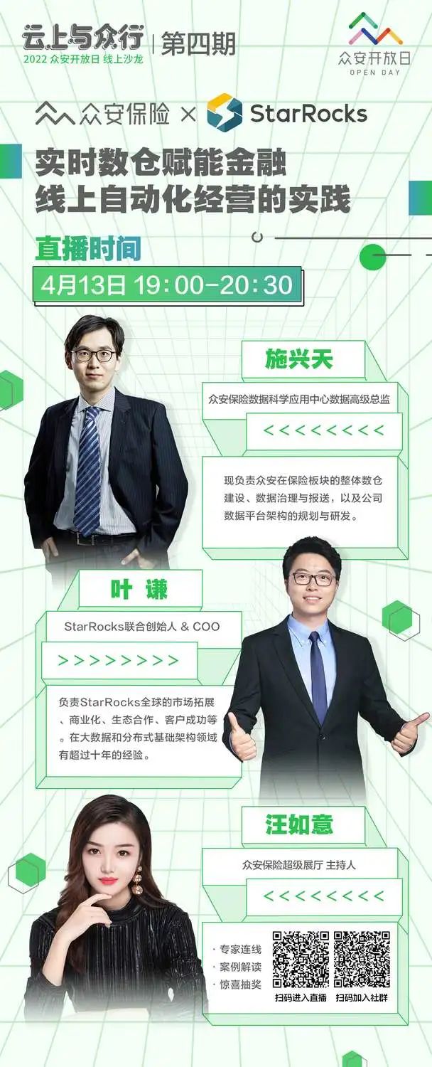 今晚7点,国内首家互联网金融公司众安保险将与 StarRocks 举办一场联合直播。