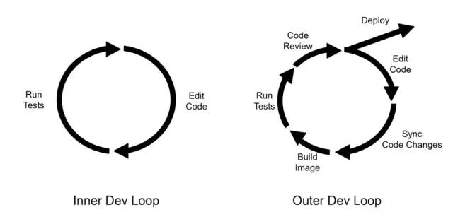 开发人员在更改代码时可能会将流程分解为内部开发循环和外部开发循环。