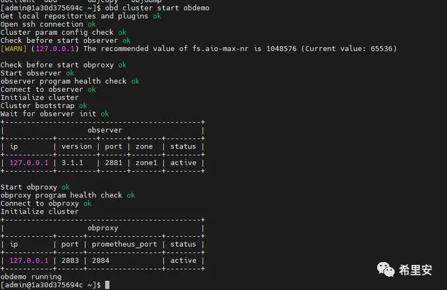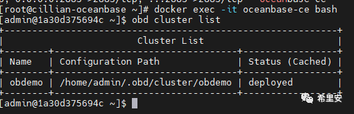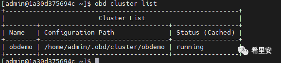 查看下数据库密码:在 home/admin/.obd/cluster/obdemo/
