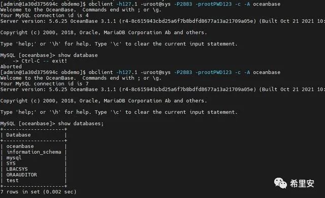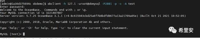 obclient -h127.1 -uroot@sys#obce-single -P2883 -prootPWD123 -c -A oceanbase