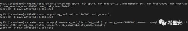 create tenant obmysql resource_pool_list=('my_pool'), primary_zone='RANDOM',comment 'mysql tenant/instance', charset='utf8' set ob_tcp_invited_nodes='%', ob_compatibility_mode='mysql';