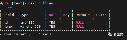 建一个测试表试试,用户名默认为空