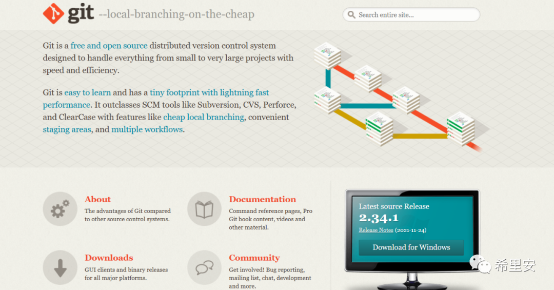 Git是一个开源的分布式版本控制系统,可以有效、高速地处理从很小到非常大的项目版本管理。这是官方解释,结合自己经验来说,一般在不大不小的公司里,开发的大佬提交代码就是用这个工具的,这里贴一下官方地址:Git (git-scm.com)