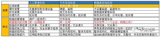 从人类社会产生,数据和信息的管理就一直伴随,无论是结绳记事,还是信息技术普及的今天,我们主要聊一下计算机出现后数据管理技术发展史, 在应用需求、 计算机软硬件发展推动下大体经历了三个发展阶段: