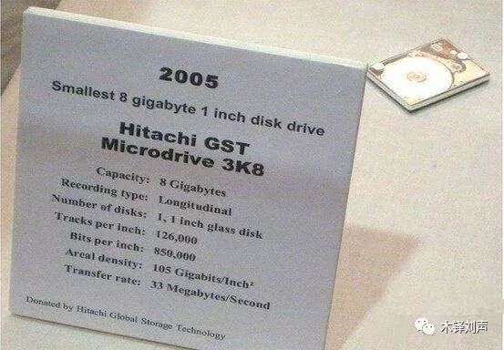 2005年,日立推出最小的8GB 1英寸微HDD。