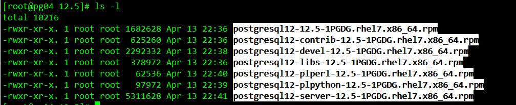 [root@pg04 12.5]# yum localinstall *.rpm