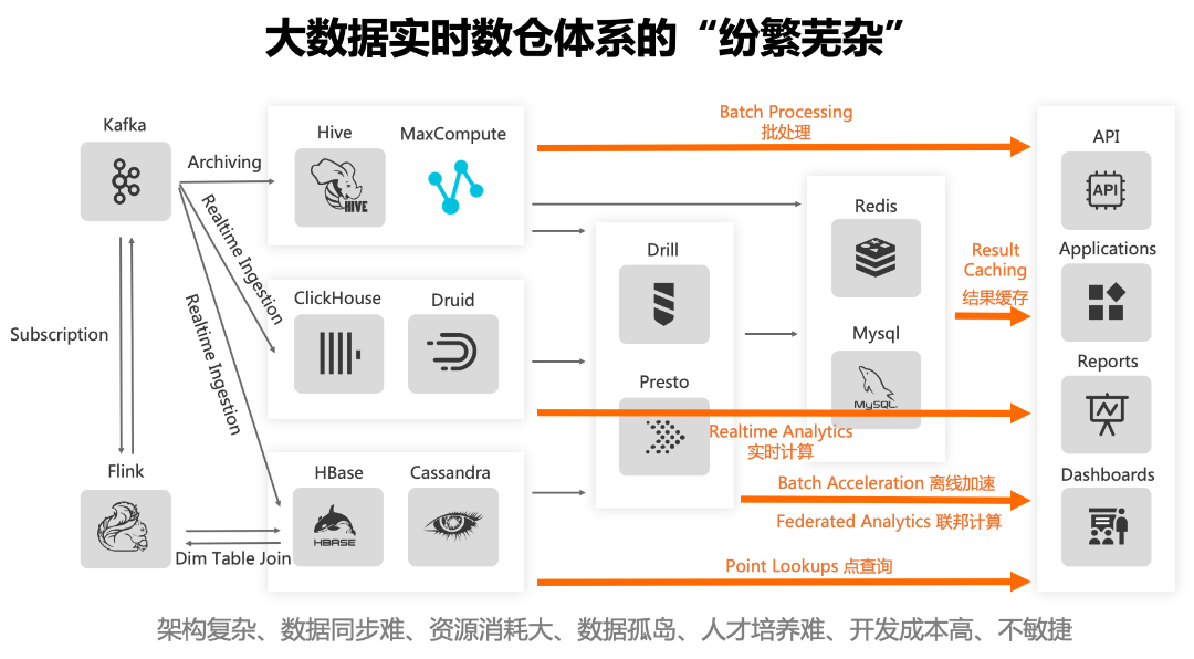 · 不同的引擎提供数据出口,数据需要存储多份,造成数据的天然割裂,也很容易造成数据不一致。