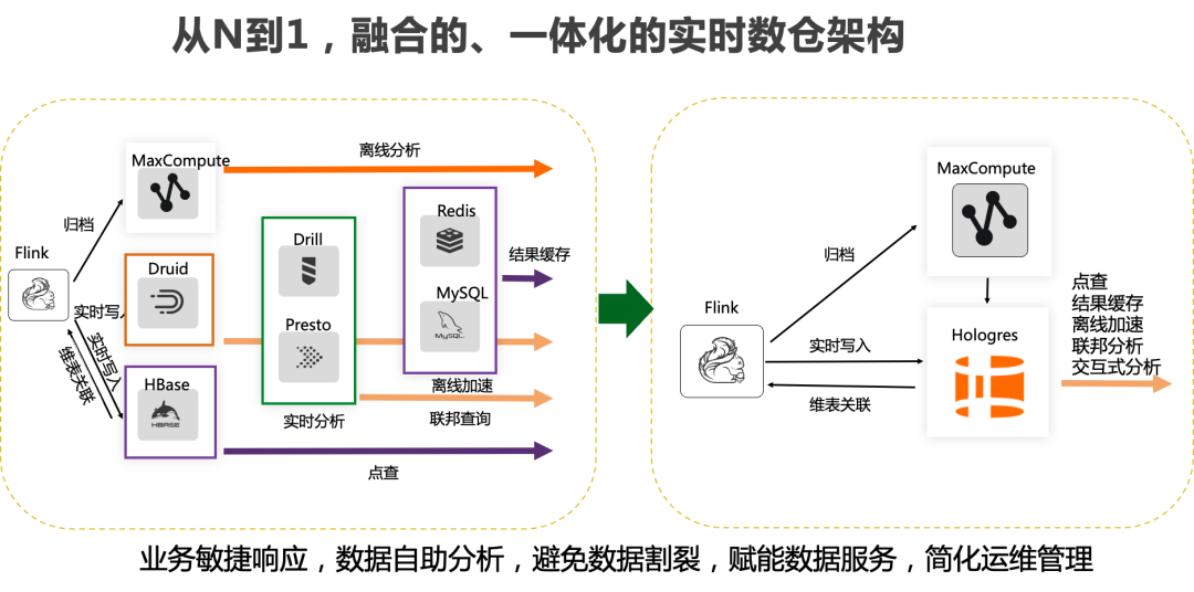 · 精简架构,统一了数据存储、数据服务出口,同时支撑复杂多维分析和高QPS服务化查询,真正做到一站式实时数仓