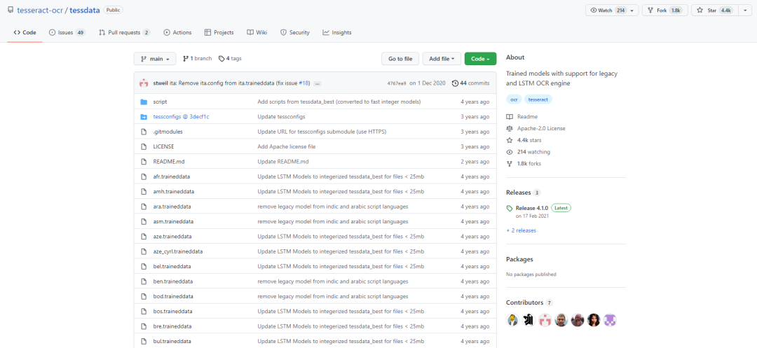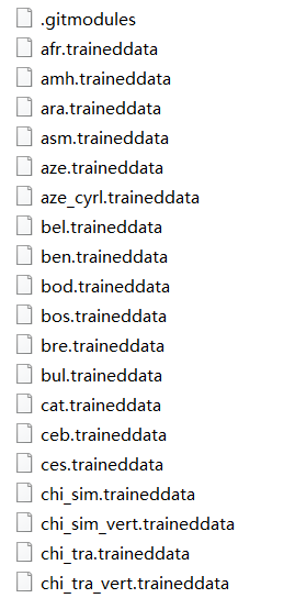 点击下载,然后解压缩,可以看到这些.traineddata,应该是数据文件,例如语言类的,中文集、英文集等,