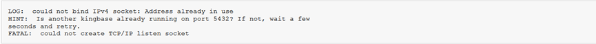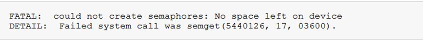 并不意味着你已经用光了磁盘空间。它的意思是你的内核对System V信号量的限制小于KingbaseES想创建的数量。和上面一样,你可以通过减少允许的连接数(max_connections)来绕开这个限制,但最终你还是会希望提高内核的限制。