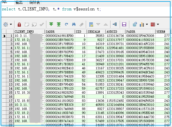 此触发器会在用户连接数据库时,记录访问者IP,并将访问者IP写入 v$session 的 client_info 字段。