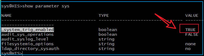 需要注意的是,此触发器是否生效还与初始化参数 _system_trig_enabled 是否启用有关,如果参数为 FALSE,则系统触发器不生效。
