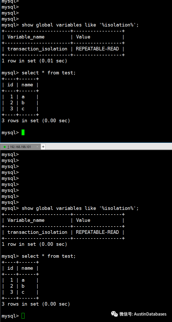 我们对上面的解释进行一个具体的操作,操作的MYSQL版本为 MYSQL 8.027 社区版