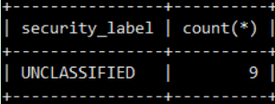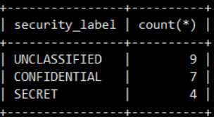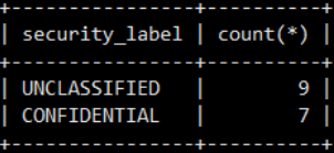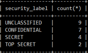mysql -u public1 -p --execute="SELECT security_label,count(*) FROM protected.employee group by security_label"