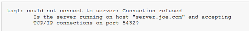 最后一行可以验证客户端是不是尝试连接到正确的位置。如果实际上没有服务器在那里运行,典型的核心错误消息将是Connection refused或No such file or directory(值得注意的是这种环境中的Connection refused并不表示服务器得到了你的连接请求并拒绝了它。那种情况会产生一个不同的消息,如《KingbaseES安全》II.安全细则-“客户端认证”-“4.14 认证问题”中所示)。其它像Connection timed out这样的消息可能表示更基础的问题,如缺少网络连接。