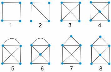 这也是有名的“一笔画”问题。聪明的读者你可以试试如何用一笔画完成这几个图: