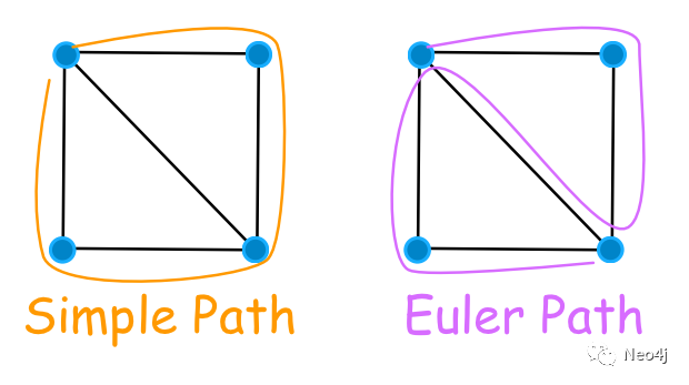 每个顶点访问一次的路径称为简单路径。每条边访问一次的路径称为欧拉路径。