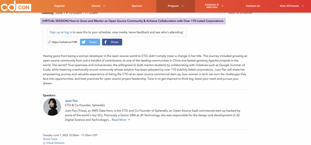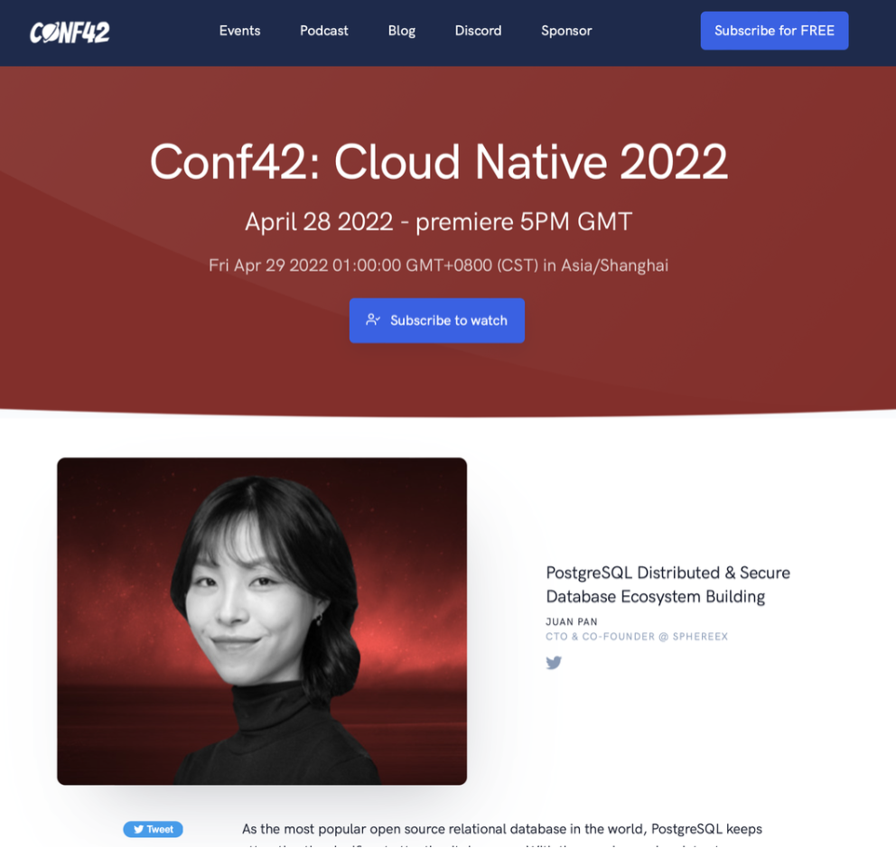 潘娟受邀将于 4 月 28 日参加 Conf42: Cloud Native 2022 大会,与海外开发者分享 Apache ShardingSphere 的技术实践。Conf42 是英国最好的在线技术大会组织,在全球范围内举办出色的技术活动。