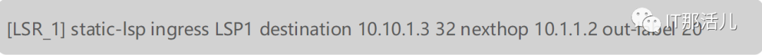 Ingress LSR_1上的配置。配置目的IP地址(LSR_3的Loopback1接口IP地址)、下一跳和出标签(假设为20)。