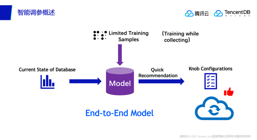 想详细了解资源管理监控原理、查询优化原理及特定业务场景查询优化的具体内容。点击观看下方视频,即可获得完整版张远讲师分享内容。深度学习这个词已经进入公众的视线,时至今日,相关技术也比较成熟,腾讯云数据库团队也在思考如何借助深度学习的方式来提升数据库的运行效率。第一个想到的就是数据库的参数调优。这是一个不亚于围棋的难题。由于业务系统的千差万别,参数的设定也是一个让数据库管理者特别头疼的难题。往往需要借助一些经验,去构筑一套相对通用的参数模板。参数调优其实是专家级数据库管理者专属的一个能力。我们以 MySQL 8.0版本为例,提供了接近1000个可配置的参数,常用参数近200个。同时,不同的业务也具备不同的负载特征。如果我们将每一个参数的可设置范围相乘,其可能性远超于3的361次方,是超过可观测宇宙的原子总数的。如果每验证一种参数设置的可行性需要花费五分钟的话,所消耗的时间也远远超过了从宇宙大爆炸到现在的时间。在面对如此复杂的情况,往往只能借助经验,然后使用归纳法在有限的参数中,通过有限的变化来提升数据库运行的性能。由此也产生了一些针对不同规格、不同场景下的参数模板。其实大家在日常使用数据库的过程当中,也会不断的去网络上搜索各种各样场景中的最佳参数的设置方式,而搜索出来的结果都聚焦于有限几个参数。其实无法适配不同业务的需求,使得数据库无法运行在最佳状态下。腾讯云数据库团队通过不断强化学习算法来解决数据库参数设置的问题。在2019至2021年间,腾讯云数据库团队连续发表两篇顶级论文。基于论文研究成果研发出了一款落地真实场景的可用系统,CDBTune。CDB(cloud database),即云数据库,CDBTune就是对云数据库进行调优的一整套解决方案。在CDBTune方案中,团队选择端到端模型。因为不论是基于搜索的方法还是基于学习的方法来进行参数推荐,都存在弊端。基于搜索的方式耗时会非常长,基于学习的算法需要海量的高质量样本,很难适应工作复杂,随着时间的变化的业务。
