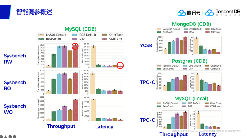 通过强化学习模型,将调参的过程当作是获取最佳性能得分的游戏,进行迭代学习,最终实现不同工作负载下的数据库性能提升。实测得到的结果显示,在一般情况下性能提升在15%-50%之间。同时也得益于腾讯云充沛且完善的硬件基础设施,以及遗传算法、专家经验、定型价格,使得这一能力得以产品化,不仅仅局限于理论。想了解更多智能调参的最佳实践内容,点击观看下方视频,即可获得。DBS是为数据库提供连续的数据保护,低成本的存储备份服务。它可以为多种部署形态的数据库实例提供数据保护,包括企业自建IDC或第三方云厂商、混合云、私有云上的数据库实例,当然还包括腾讯云上的,像CVM上自建数据库、腾讯云数据库TDSQL上的实例等。客户的数据库实例经过不同形式的网络连接接入到腾讯云,通过SSL安全加密通道,把数据备份到腾讯云内置存储中。通过客户设定的KMS密钥生成数据加密密钥,保证数据安全存储在腾讯云后端存储中。客户可以根据自身业务需求选择备份、恢复的时间点,通过加密信道传输恢复到腾讯云上或云下数据库中去。DBS就是这样一套完整的数据备份和数据恢复解决方案,可以实现实时增量备份、快速数据恢复。全自动备份:通过预设备份计划,备份任务将自动在指定时间周期性地执行。也就是说,客户可以根据业务特征,制定备份周期,DBS可周期性的去备份原数据库上的数据。全量+增量:支持数据库的全量及增量备份,提供秒级RPO;支持全库或部分库表的灵活选择。加密存储:备份文件托管于云上,支持AES256加密,数据与密钥分开托管,支持跨地域托管,保障数据安全。自动恢复:支持自动恢复至指定目标数据库,秒级时间点选择;支持全库或者部分库表选择以及库表重命名;同时也支持下载备份集。故障自动恢复:每一个任务传输节点都具备强恢复和自愈能力。数据安全:传输信道ssl加密,数据AES256加密存储,数据与密钥分开托管。高传输性能:灵活根据客户业务复杂程度选择备份链路规格,根据不同规格来完成备份需求高规格服务器来保证每条备份链路都能拥有良好的传输性能。可视化操作:可视化界面几步简单配置即可开启数据备份,方便客户进行配置状态的查看。想了解更多数据备份实现架构、原理及实践应用内容,点击观看下方视频即可。随着业务互联网化发展,越来越多的业务应用选择使用分布式数据库解决方案,数据库的数量在急剧增长。另外随着数据库市场的发展,使用的数据库种类也越来越多,从过去主要使用成熟商业数据库产品,发展到现在使用越来越多的开源数据库、国产数据库、新型分布式数据库,以及各种针对特定场景的NoSQL数据库。这其中面临着几大挑战,首先是运维架构的复杂性带来的挑战。企业当前面临的问题是随着数据库种类的变多,用户量也在不断增多,这对DBA的技术能力和架构设计能力是一个挑战。第二个运维挑战是规范。不同的数据库类型会有不同规范,企业一般也会在通用的规范下个性化定制不同规范。其实规范是越来越多的,规范类型也不一样,针对不同类型的库规范也不一样。但是数据库规范化是很有意义的,能尽可能减少数据冗余,并且降低数据插入异常的情况,但是数据变更规范如果全靠人工去维护的话,面临如此多的规范,其实是有一定难度的。第三个挑战是开发和运维团队的交互成本很高。在企业中,一般都是一个DBA对应着很多应用人员,如果应用人员发现问题时再去反馈DBA,然后DBA再去怀疑数据库,进机房去看。整体看下来,传统的开发人员和DBA的交互模式管理起来是比较复杂的。总结来看,其实就分为两大痛点,一个是数据库运维问题,一个是我们流程管理的复杂度。那怎么理解自身的复杂度?就是说当开源数据库和传统数据库同时使用的时候就会导致数据库的数量和种类越来越多,并且运行环境也越来越复杂,架构也越来越丰富,互联网上线的变更也变得越来越频繁,流程管理的复杂度也日益增加。以往的数据库管理方式主要是以需求驱动,运营团队一般是被动去为产品和开发部门提供运维操作,如建库和扩容升级等,比较简单重复,但又消耗大量工作精力。所以我们就在思考,如何去简化这样操作,提升运维效率。传统管理方式的另一个特点是属于事件驱动型的,团队一般会有一定的事件防御和检查机制,但是又不是很全面。当一个数据库事件发生之后,很多时候都是通过业务部门或者开发部门反馈后运维团队再介入进来,效率就很难提高。另外,传统运营模式下对运维人员的技能要求也比较高, DBA的需求量在不断增加的同时技术门槛也变得越来越高了。简言之,DBhouse是数据库统一纳管平台,帮助企业实现数据库运维自动化、自助化和流程化。功能如下:监控能力。我们会去做一些数据库探活,包括数据采集,采集完的数据会定义告警。能力包括常用的数据库巡检,支持导出巡检报表;安全能力。包括制定规范、客户审核、权限管理、完善审批流程链路、支持审计等。运维能力。DBhouse最大的特点是帮助运维人员提高运维效率,通过JDBC和脚本的方式能够帮助用户去做很多运维操作,快速处理故障,比如说去做扩缩容。在交付场景上也能去实现自助化、标准化和自动化。想详细了解DBhouse架构设计、技术实现路径及团队经验总结的具体内容,点击观看下方视频即可。想要讲师ppt的小伙伴,可在腾讯