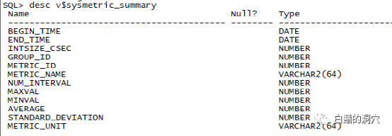 包含了均值,方差,MAXVAL/MINVAL等信息,这对于诊断分析十分有价值。而v$sysmetric_history里则存储的是一个较长时间的历史数据。这个视图和openGauss的等待事件统计信息很类似,不过就像我上周评价openGauss等待事件统计信息一样,这个一小时的平均值加上和AWR一样保留一定时间历史数据的做法,对于DBA分析问题来说更有价值,设计也更为合理。