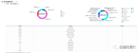 采样和全量的统计数据对于分析诊断,特别是自动化诊断算法的影响也是很大的。我们来看一个实际例子,因为openGauss支持等待事件的统计数据,因此我们是用统计数据来分析一个时间段(比如20秒钟)内数据库等待事件的总体情况。