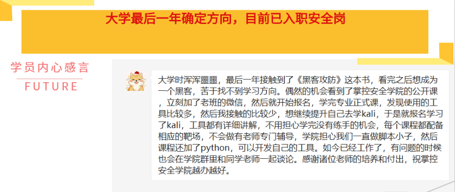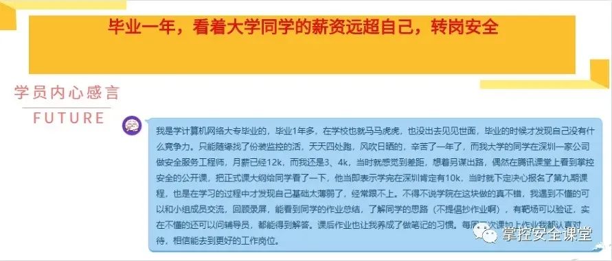 后来,了解到老王开始也是开始接触网络安全这块,在学习过程中慢慢的开始萌生了想转岗的想法。