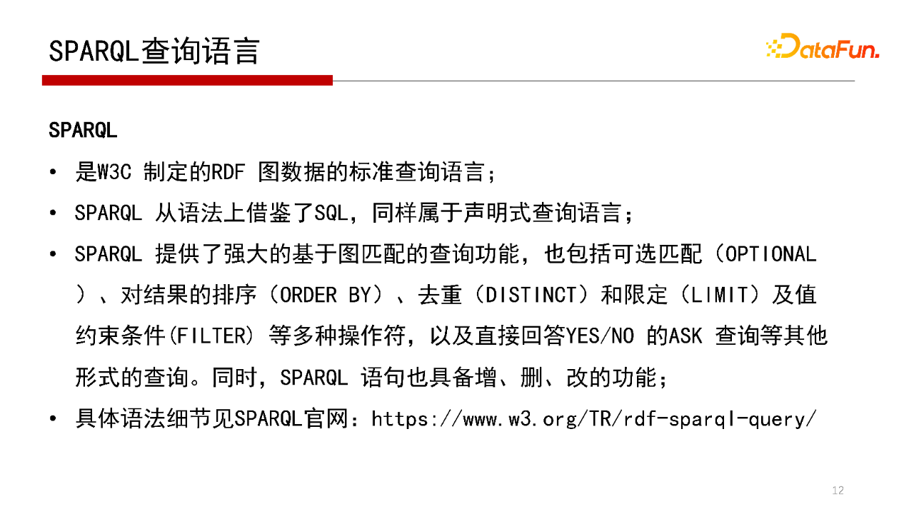 查询语言SPARQL与SQL很像,也是一种描述性语言,具体如何执行依赖数据库引擎。