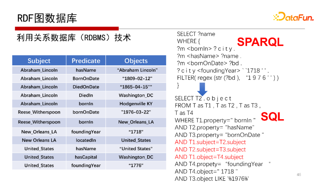 SPARQL语句也可以用关系数据库来解。可以将SPARQL转化为SQL语句。