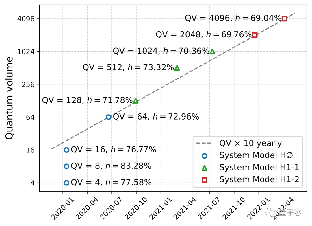 这次测试的系统是去年年底上线的系统模型H1-2,它在2021年12月创造了一个记录,当时它通过了量子体积2048的测试。